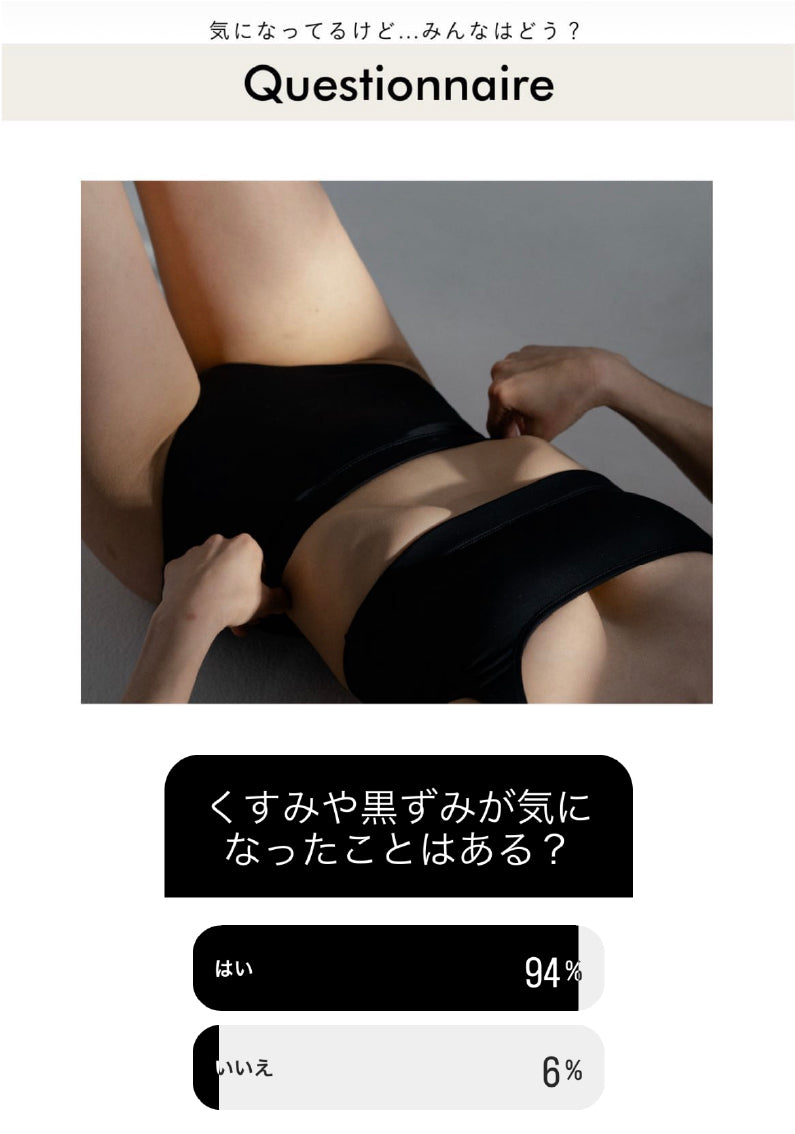 デリケートゾーンや鼠蹊部(そけいぶ)など黒ずみやくすみが気になるところに塗布してください。
